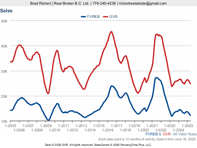 Each data point is 12 months of activity. Data is from June 19, 2025.